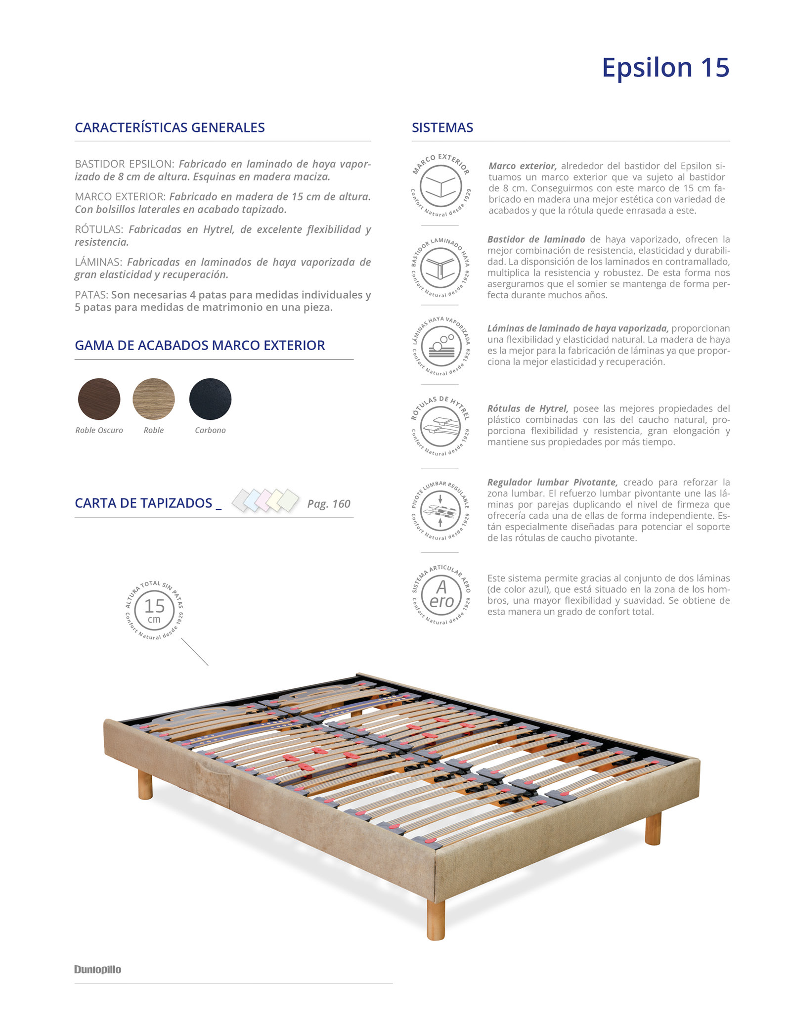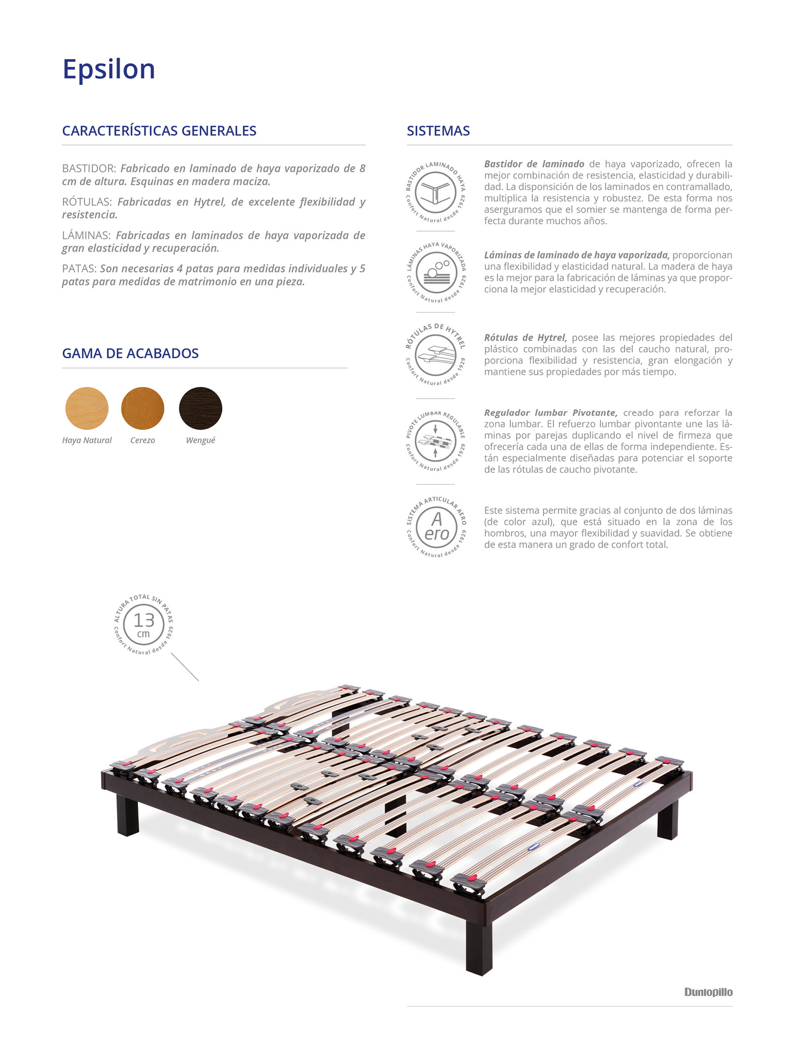 BASTIDOR EPSILON: Fabricado en laminado de haya vaporizado de 8 cm de altura. Esquinas en madera maciza.