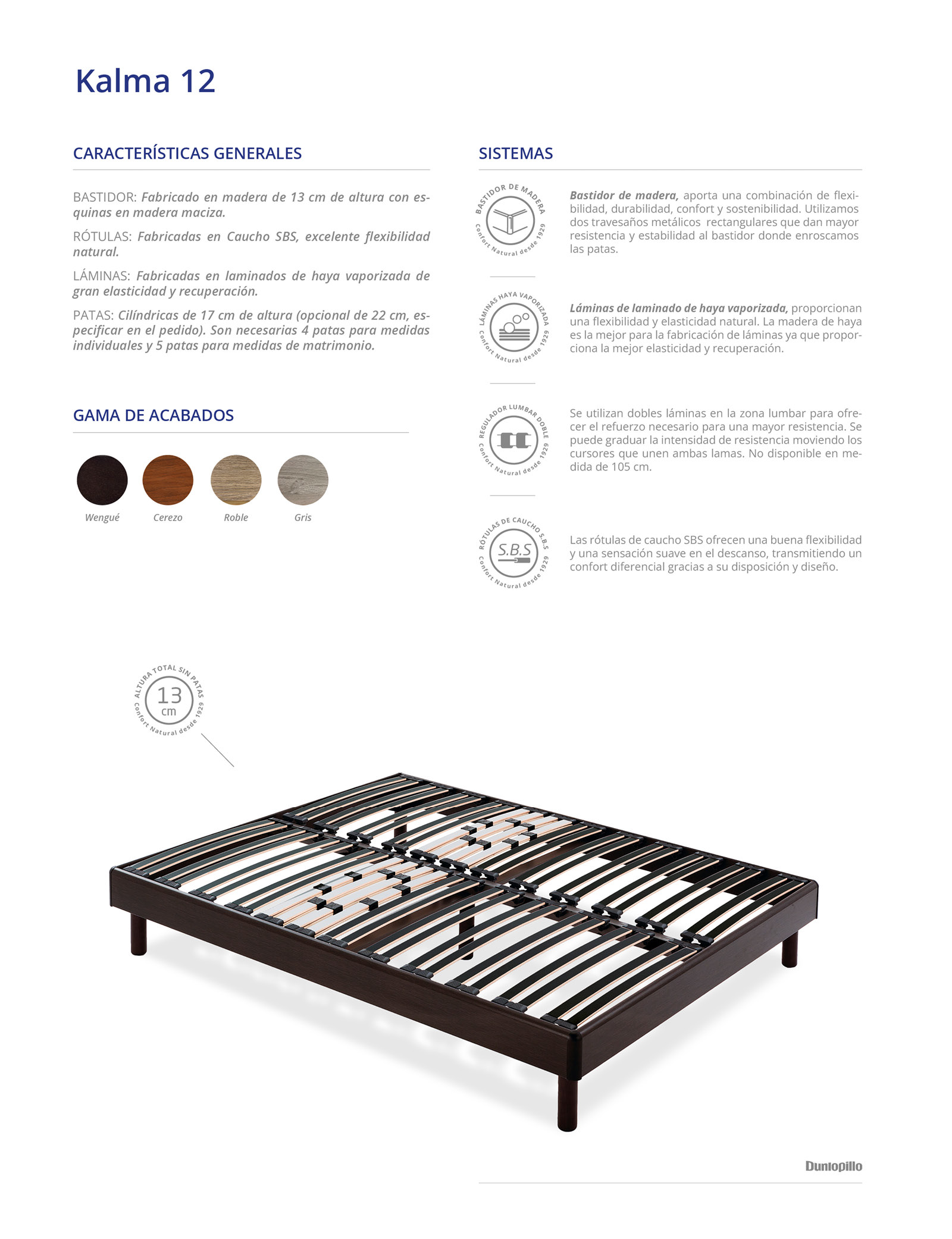 BASTIDOR: Fabricado en madera de 13 cm de altura con esquinas en madera maciza.