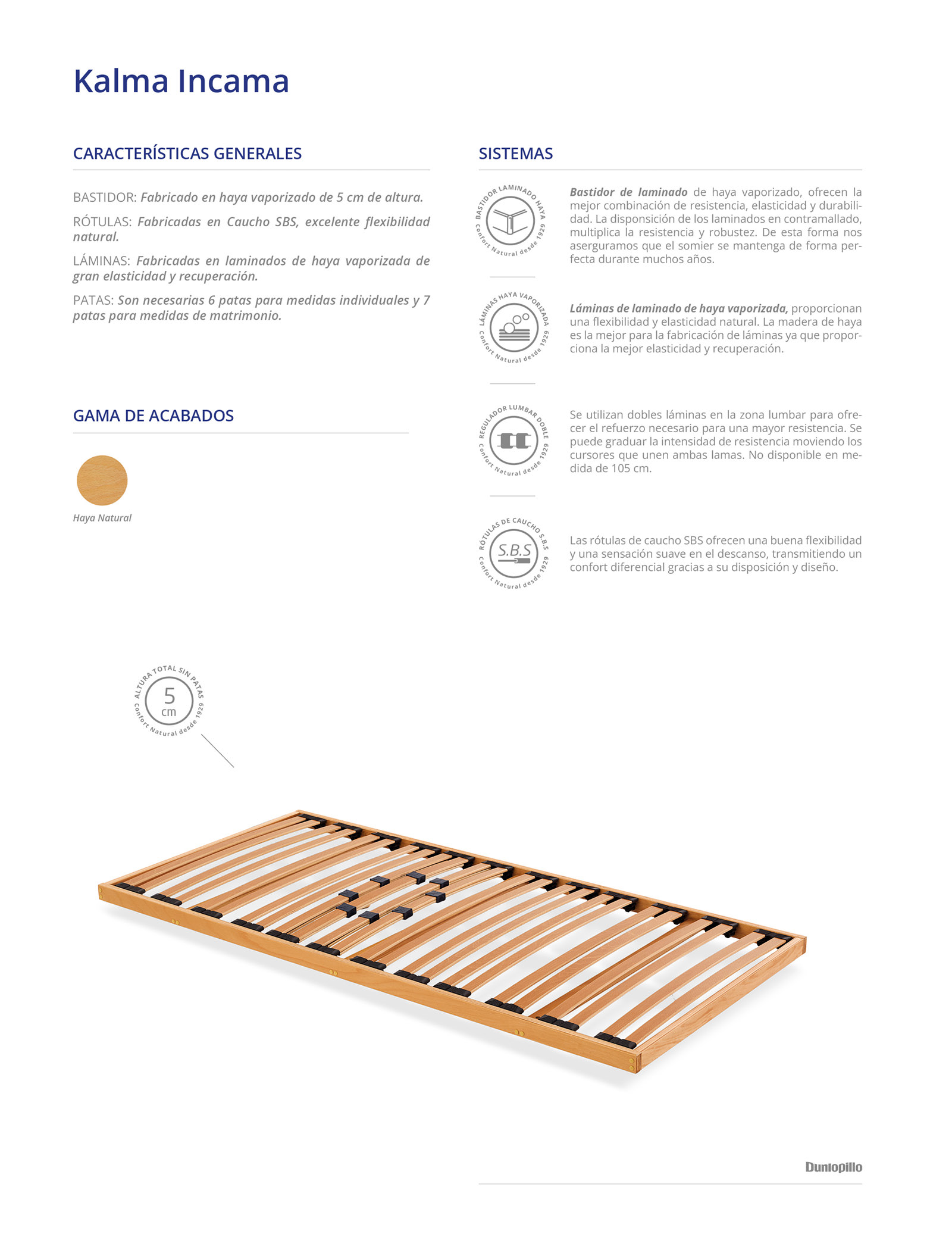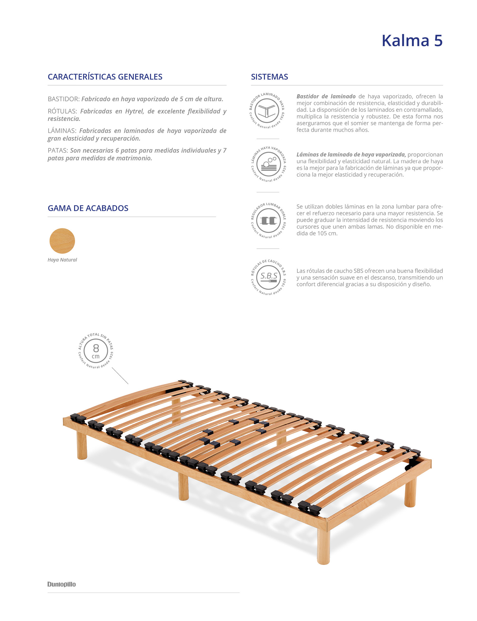 LÁMINAS: Fabricadas en laminados de haya vaporizada de gran elasticidad y recuperación.