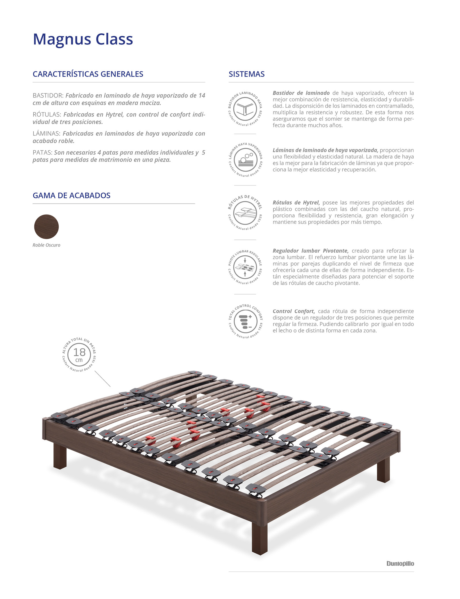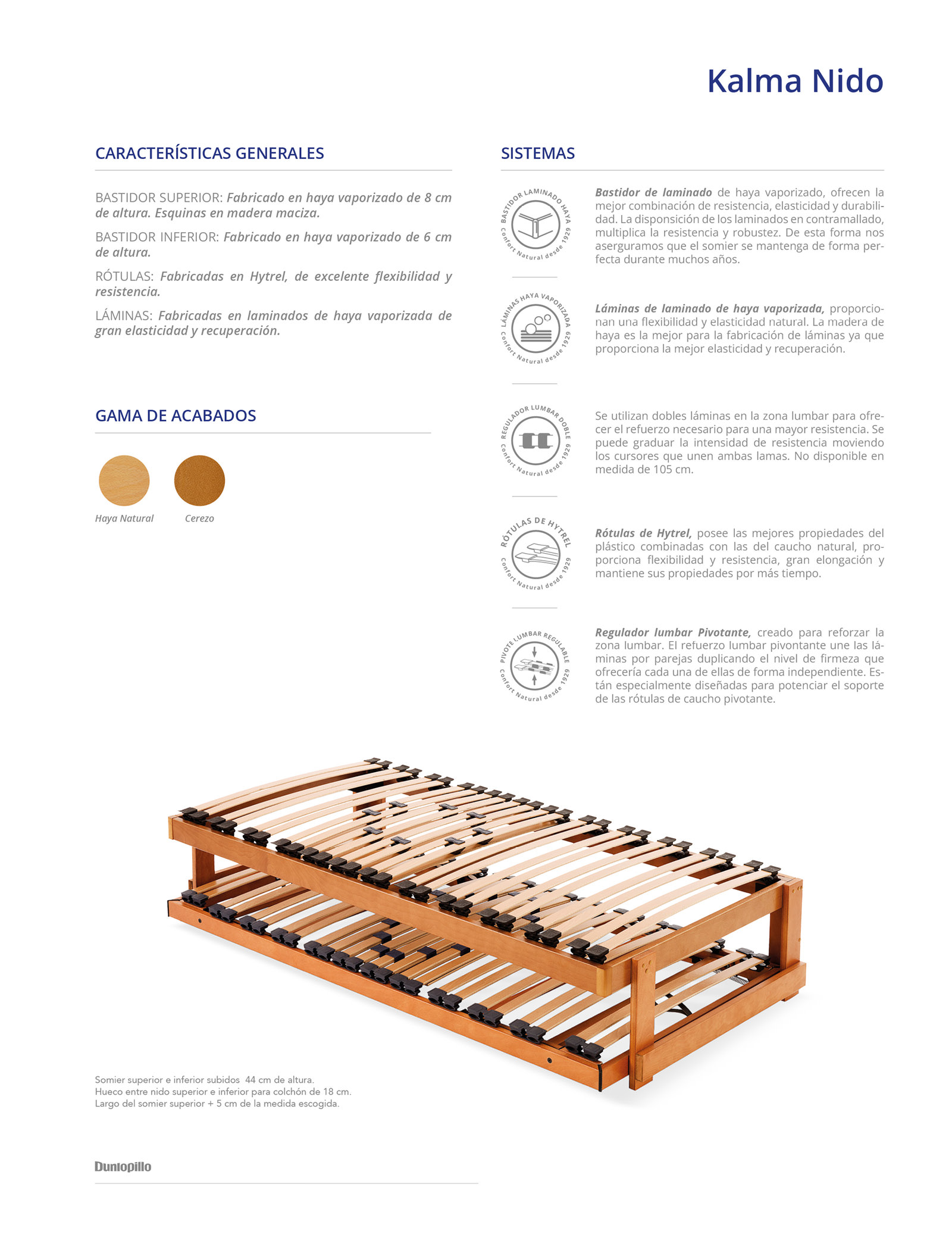 BASTIDOR: Fabricado en laminado de haya vaporizado de 14 cm de altura con esquinas en madera maciza.