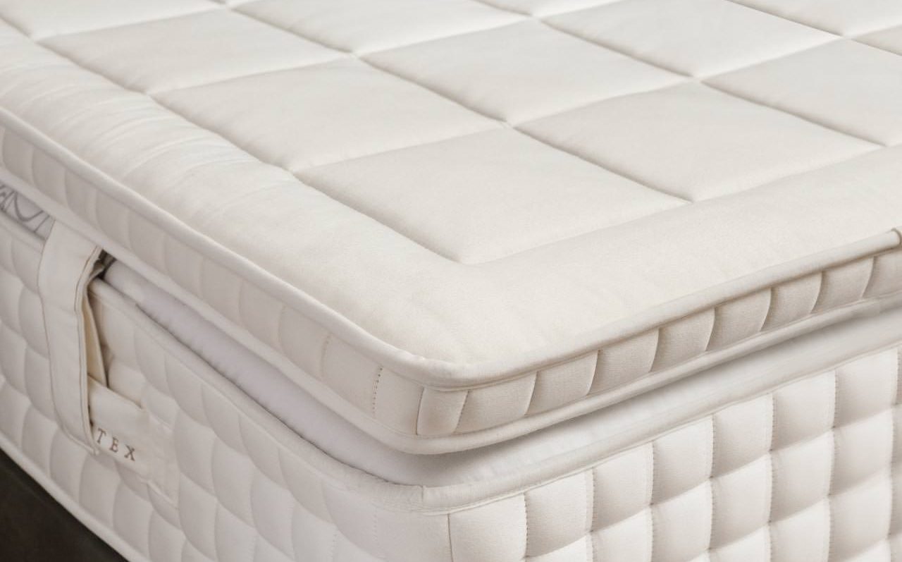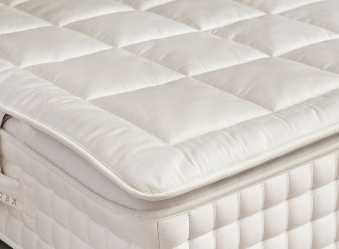 TIPO DE MODELO: Cerrado con doble ribete _ NÚCLEO: 3 cm de látex Talalay _ TEJIDO: 100% Viscosa _ ACOLCHADO SUPERIOR: Bamboo, lino y algodón _ ACOLCHADO INFERIOR: Bamboo, lana y mohair _  FIJACIÓN AL COLCHÓN: 4 asas laterales _ ALTURAS TOTALES: 7 cm _ GRADO DE FIRMEZA: Suave