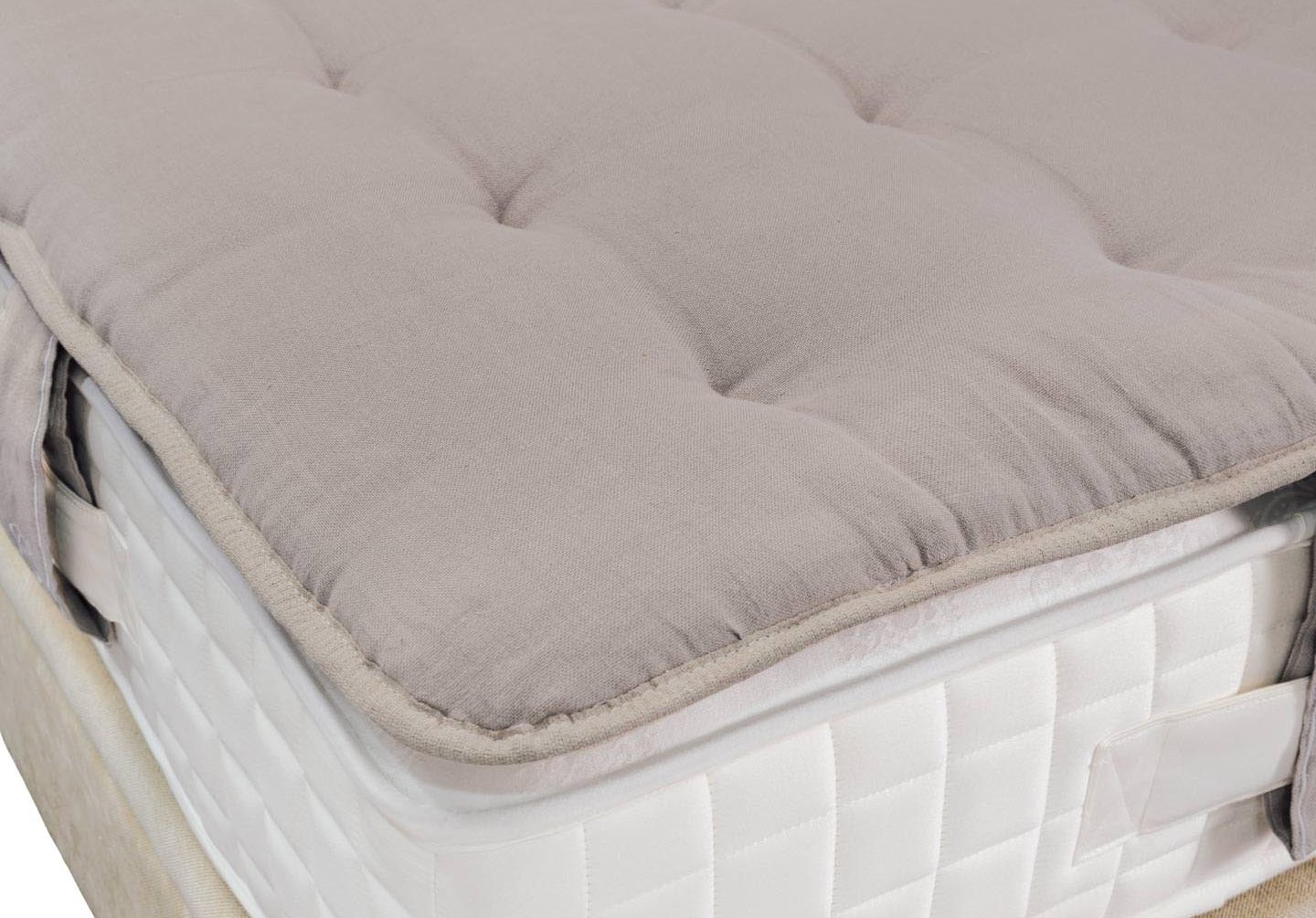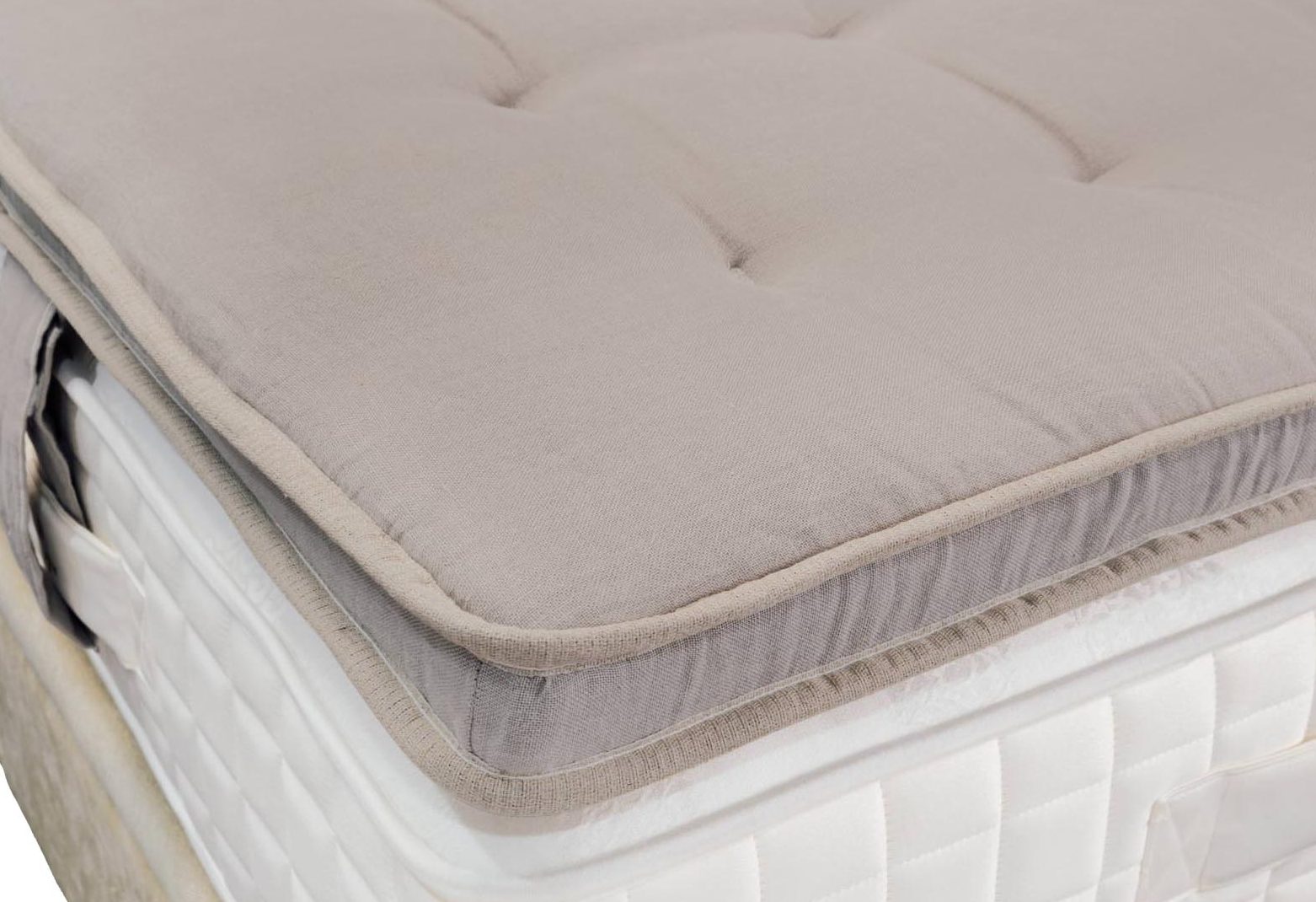 TIPO DE MODELO: Cerrado con ribete simple _ TEJIDO: 100% Lino _ ACABADO: Con costura _ ACOLCHADO: Bamboo, lino, algodón, mohair y lana _ FIJACIÓN AL COLCHÓN: 4 asas laterales _ ALTURAS TOTALES: 6 cm _ GRADO DE FIRMEZA: Ultrasuave