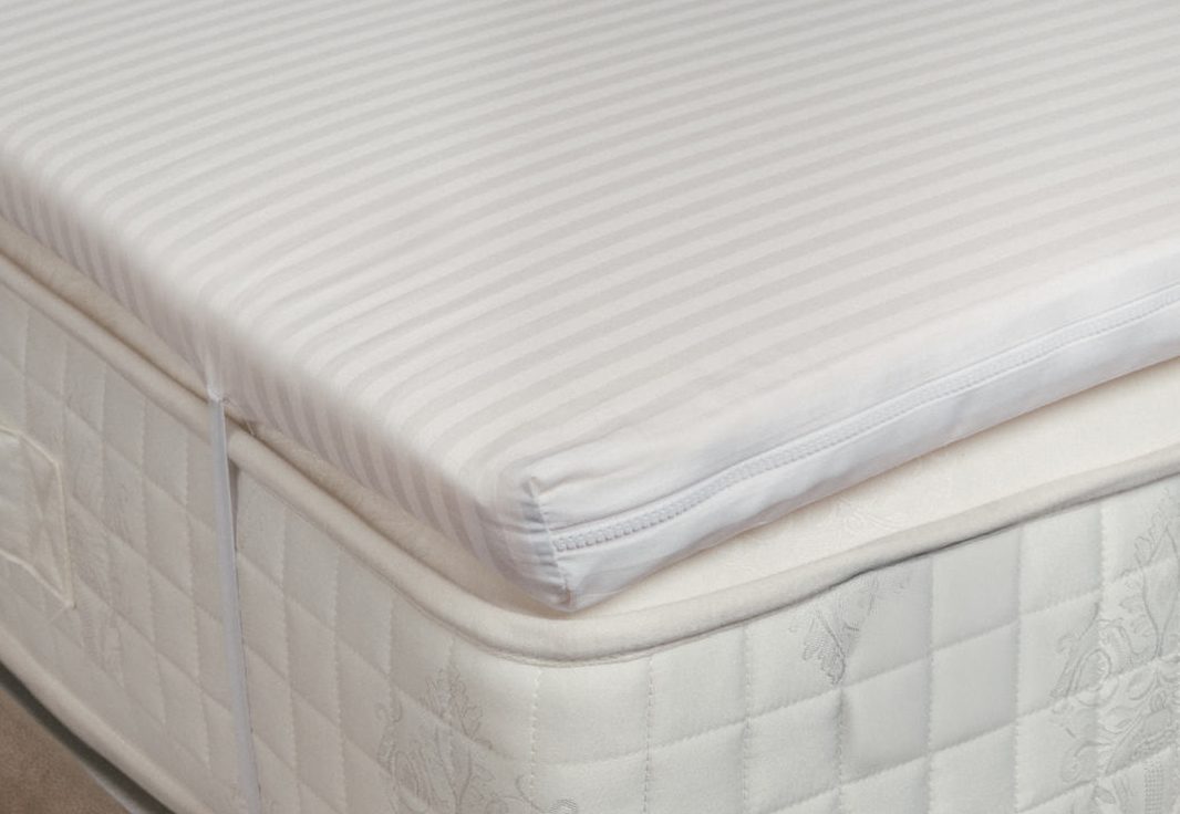 TIPO DE MODELO: Desenfundable con cremallera perimetral _ NÚCLEO: 5 cm  de látex Talalay _ TEJIDO: 100% Algodón _ FIJACIÓN AL COLCHÓN: 2 cintas elásticas_ ALTURAS TOTALES: 5 cm _ GRADO DE FIRMEZA: Medio